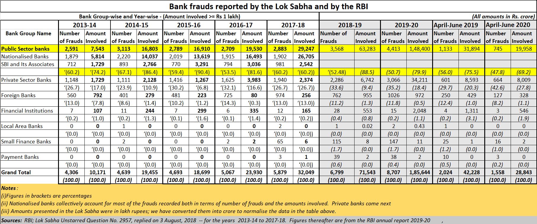 Remember, these announcements were being made as the chief guest at the 73rd annual general meeting of the Indian Banks´ Association (IBA). This is a body for government-owned banks, which have been responsible for the largest number of bank frauds (see table). And as the following analysis will show, all the demands of the finance minister are fraught with risk – not just for the government owned banking sector, but for the entire country as well.