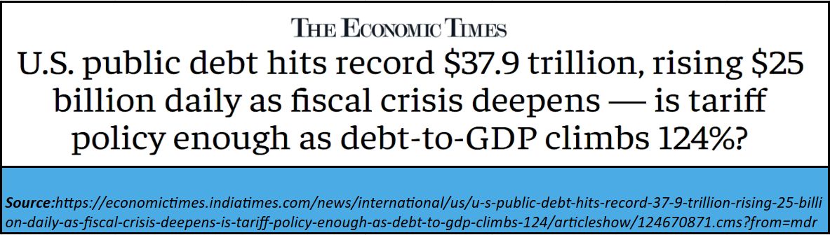 There is a possible third scenario. Caveat: this could be considered as being speculative. Since the US has unleashed two wars (if not more – we are not counting China, Iran and Venezuela as yet), it could possibly choose to freeze debt repayment under its war emergency provisions. Trump could become a war time president allowing him to remain in office for yet another term. Sounds far-fetched, true. But these are not normal times. Moreover, Trump is no normal person.