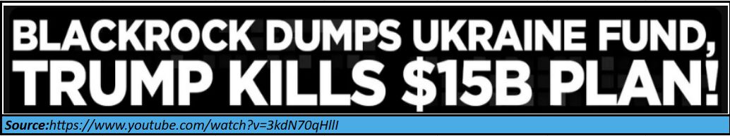BlackRock sought to create a Ukraine fund of $15 billion. By August 2025, BlackRock was compelled to cancel the fund (https://www.youtube.com/watch?v=3kdN70qHllI). It was time to write off these investments as an investment gamble that has gone sour. There are indications that this fund could have swelled to $100 billion (https://successfulsocieties.princeton.edu/sites/g/files/toruqf5601/files/BlackRock.pdf).