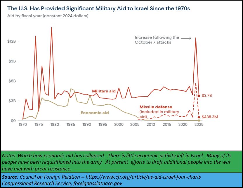 Israel is near bankruptcy. No more US economic aid is possible because many businesses are dead. According to John Mearsheimer(during his talk in Australia on 17 May 2024(at timeline 1:27:34 at https://www.youtube.com/watch?v=kAfIYtpcBxo) over 500,000 Israelis had already left Israel. Today, the number is estimated at 1.5 million. Many more Jews are believed to be keen on leaving in disgust once the Israeli government reopens its borders. Many of them are key workers and entrepreneurs. Many businesses are closing down because its employees have been called to war duty as reservists. Israel is no longer an economically viable state without US support. Today, Israel is totally dependent on the US. Its former ability to stand on its own has been decimated (Watch timeline 6:10 to 7:20 at https://www.youtube.com/watch?v=La7dSCZCGmo).