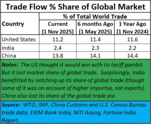 India had the potential for much more. India can be a formidable player if only the government has a vision. Its neglect of education and skill development (ideology gets pushed even in centres of excellence) have caused the QS ranking of the best Indian universities to fall (https://indianexpress.com/article/education/qs-asia-rankings-2026-indias-top-iits-slip-as-universities-from-china-singapore-surge-ahead-10345225/). Poor education has made much of India unemployable. Falling educational standards will only blunt India’s edge in global markets.