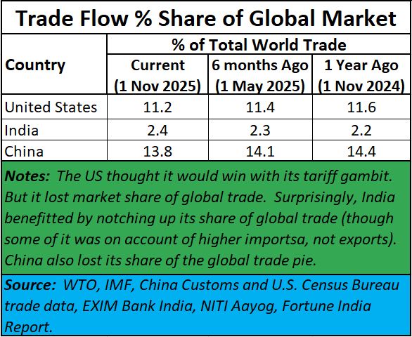 India had the potential for much more. India can be a formidable player if only the government has a vision. Its neglect of education and skill development (ideology gets pushed even in centres of excellence) have caused the QS ranking of the best Indian universities to fall (https://indianexpress.com/article/education/qs-asia-rankings-2026-indias-top-iits-slip-as-universities-from-china-singapore-surge-ahead-10345225/). Poor education has made much of India unemployable. Falling educational standards will only blunt India’s edge in global markets.