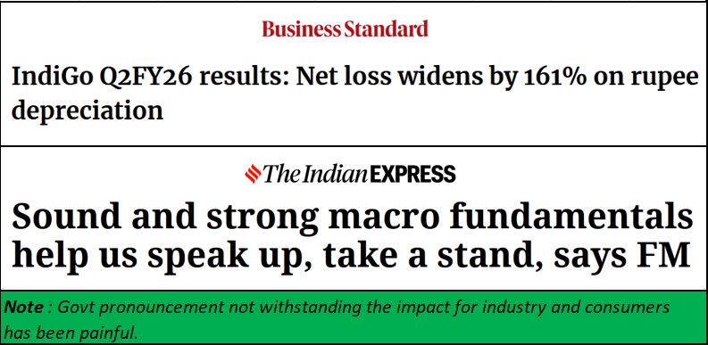 The Rupee was thus weaker than even a weakening dollar. Yet, it is sad to see Indian-government-spokespersons emphatically stating that India’s economy has remained robust. This runs counter to the harsh realities faced by businessmen. For a company like Indigo that is the largest in this industry in India, its lease rental costs, fuel, maintenance and servicing must be paid for in forex. Earlier, incomes from domestic passengers were good enough to pay these bills. Now the company faces losses on account of a weakening rupee. That is why it has decided to focus on expanding its overseas services so that it can earn more in foreign exchange.