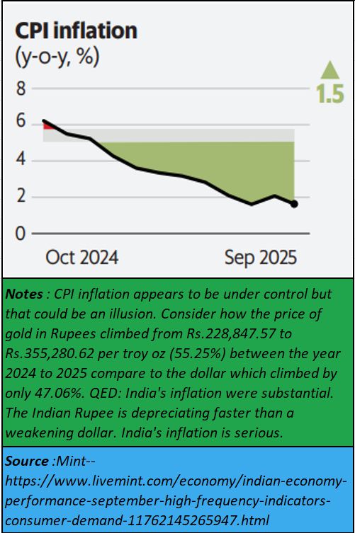 When you look at gold prices it makes sense to consider how they soared in different markets. Watch how the increase in prices has been the highest for India and lowest for China. These prices capture both the surge in the value of gold as well as local inflation. It then becomes clear that inflation has not really been tamed. In fact, the rupee has weakened even against a weakening dollar. The surge in imports, the growing trade deficit and the lack of employment will together combine to further whittle down purchasing power.