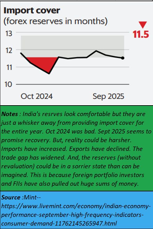 So why is import cover so poor? It is poor because India has forgotten how to export. It has failed to create new markets outside the traditional West. In ancient times, India traded with both the East and the West and excelled in such trade (https://www.youtube.com/watch?v=ibJJXeGyZxA). It has ignored the rapidly growing populations of Malaysia, Indonesia, and a host of African countries.