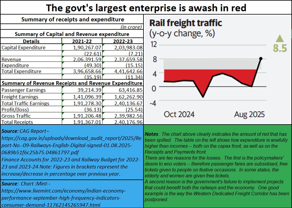 2)Political largesse either as free tickets or subsidized fares or the creation of more jobs in electorally important states like Bihar and Uttar Pradesh.