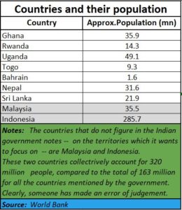 However, they seem to have missed out bigger fish. Look at the population data. It shows that both Malaysia and Indonesia account for a larger population than all the countries shortlisted by India’s policymakers. Such policymakers seldom have a mind of their own. They often reflect the views that their master would like.