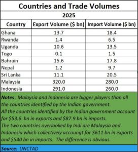 The bigger the population, the more the number of mouths to feed, bodies to cloth, minds to be educated and entertained. Population determines transport as well. And, that is where the government’s recommended list for India trade is a sad and apologetic one. The policymakers list out Ghana, Rwanda, Uganda, Togo, Bahrain, Nepal and Sri Lanka for India trade.