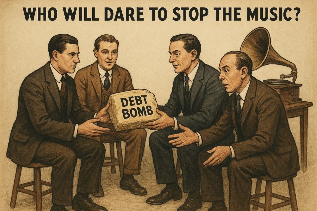 But the perpetual debt machine would probably help powerful countries like USA, China or Japan, roll over their sovereign debt. For them the music can’t interrupt the game of passing the debt bomb parcel.