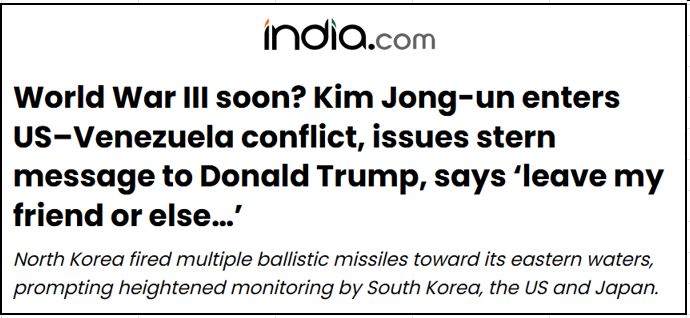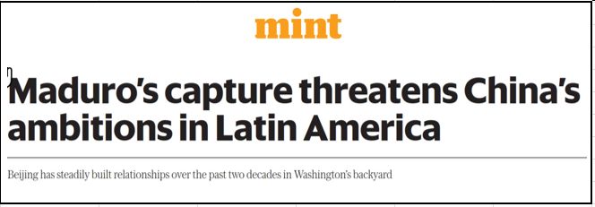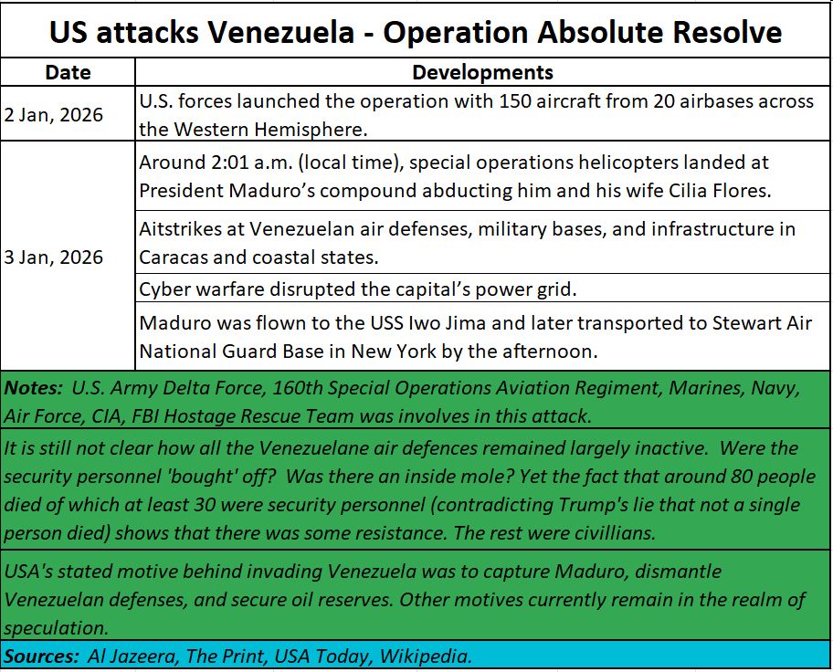 The world could be on the brink of a third World War. Russia has already warned the US of dire consequences because US naval vessels intercepted two Russian tankers on 8th January 2026. China too is watching carefully and is likely to react in case its investments in Latin America are affected.