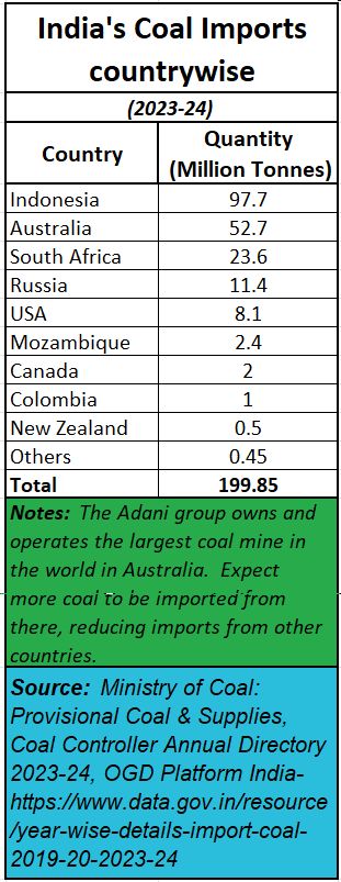 However, with Adani acquiring the largest coal mine in the world in Australia (commercial operations began two years ago), it is quite possible that Australia will become the largest coal supplier to India. The FTA that India has signed with Australia (https://www.pib.gov.in/PressReleasePage.aspx?PRID=2088669®=3&lang=2) will possibly help accelerate this process.