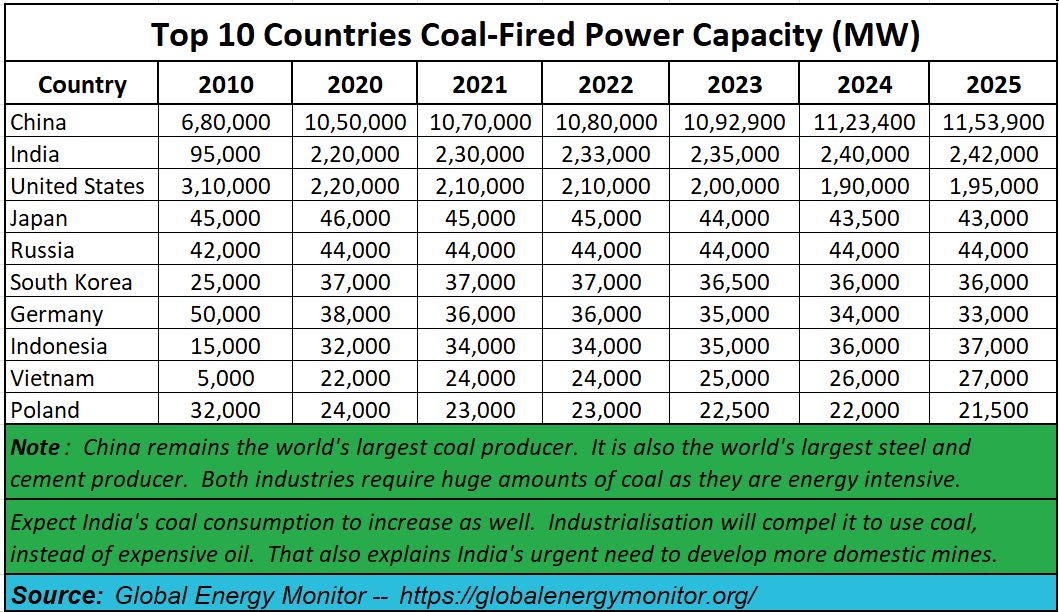 Hydro power is not available for territories where the rivers are not perennial and do not have a flow that is constant throughout the year. They are not desirable in areas that are earthquake prone or already have a huge population staying in the catchment areas. Nuclear power has its own attendant risks. High capex and the unquantified cost involved when decommissioning a nuclearplant. Solar power is good for lighting; but seldom used for high energy needs (railways, aviation, steel making). At the moment, it is King Coal that reigns supreme for electricity, railways and for cement plants in developing economies.
