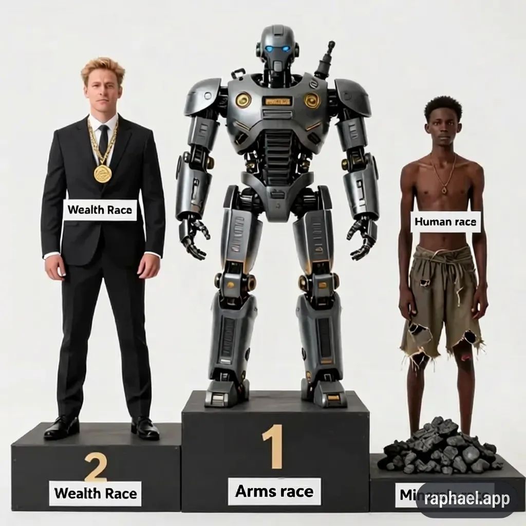 The race for wealth is, sadly, linked to the arms race. The MIC encourages the forever wars. Wars are big business; the winner gets access to the resources of the loser. The reported costs of developing weapons systems are hugely inflated to make superlative returns on the cost plus Government contracts.