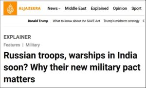 The news item in Al Jazeera on 24 April 2026 was cataclysmic — https://www.aljazeera.com/features/2026/4/24/russian-troops-warships-in-india-soon-why-their-new-military-pact-matters. Much of India’s mainstream media has not covered this item. This agreement was negotiated over eight years and ratified by Russian President Vladimir Putin in December 2025. The agreement became operational on 12 January and will remain in force for five years, with provisions for extension. Some of the very few reports on this subject are listed below: