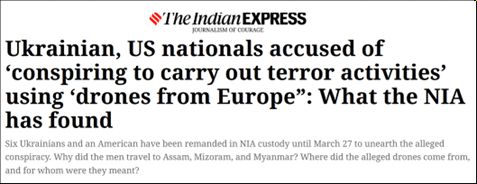 The Indian Express report also said that “The group allegedly crossed the border illegally into Myanmar with the intention of carrying out a “pre-scheduled training for Myanmar-based Ethnic Armed Groups (EAGs),” the NIA said in its FIR. These EAGs, according to the NIA, are known to support insurgent organisations operating in India in the domain of “drone warfare, drone operations, assembly, and jamming technology etc., targeting the Myanmar Junta . . . The sources said that the investigation has found evidence suggesting that multiple consignments of drones from Europe were delivered by the accused persons to individuals and groups in Mizoram . . . The NIA submitted before the court that the accused persons have disclosed during interrogation that they were in ‘direct touch and abetted in their terrorist illegal activities by unknown terrorists carrying AK47 Rifles’.”