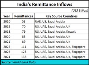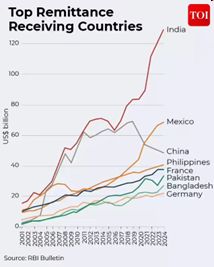 - India is the biggest recipient of remittances in the world.