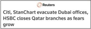 The number of people returning could be large. The decision of Israel to target Iranian banks resulted in Iran retaliating with the bombing of all US banks. JP Morgan, CitiBank, Stanchart, UBS and HSBC have announced closures all over the Middle East. The Dubai International Finance Centre (DIFC) is still working. But that is because the state is paying the salaries. The fund managers have left. And most of the foreigners left behind are American Jews. They are suspected of being Israelis living in Dubai using their American passports. Expect them to be thrown out as well. When financial institutions close, money flows stop. The pink slips should be going out shortly.