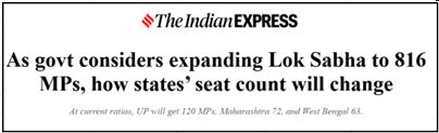 - Even though the prime minister has stated that the number of seats for South India will not decline, he disingenuously avoids telling the country that the percentage share of seats for the South will indeed decline (https://indianexpress.com/article/political-pulse/as-govt-considers-expanding-lok-sabha-to-816-mps-how-states-seat-count-will-change-10597365/) .