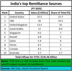 - India is the biggest recipient of remittances in the world.